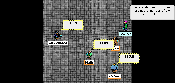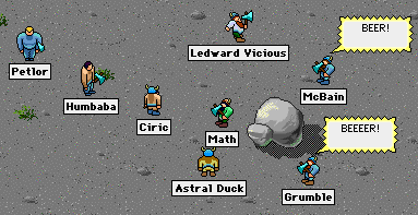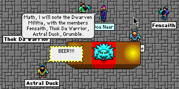 The Dwarven Militia was, of course, one of the first clan that refounded after the Ripture Wars. Warplet had disappeared for a few months so I naturally took charge in my new persona as Math, Warplet's brother. Here we are as newbies killing our first Zerk, before clan registration was open.