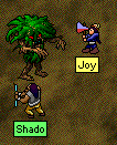 On this day, a lured tree man attacks Puddleby town square! Plunging into the fray, it slaughtered weak and strong alike. Only one person was able to injure it, but all it did was flinch. It is shown walking through a path of it's victims. I was also wounded by the great oak beast. Not even the two mighty warriors, Joy and Shado, were unable to destroy the beast. Through circumstances, I was unable to catch this one event, but a searing bolt of lightning soared across the screen in the middle of the fight and hit the Tree Giant! Even though this was truely a gift from the ancients, the great beast only shuddered and continued hewing people. For hours I was at the fight. I even saw it enter the holy temple! Finally it was lured into the fenced area of the sentinal. The sentinal, even seeing all the carnage, chose to ignore the monster. There the fight raged. Unfortunately, I was unable to capture the rest of the fight as I was called away and I was quite fatigued. Perhaps the tree giant still lurks in Puddleby. May the ancients help our poor souls...