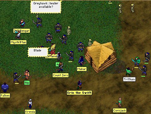 Most of you know that recently, the Darkshak pirates have been very active.  On Wednesday the pirates struck a very strong blow on us.  I first noticed it when I was in the town square along with many others, watching people kill frogs.  Of course, spriggans were sent down to wreak havock.  When I started moving east, I noticed that a darkshak sailor had snuck into town.  This was the first sign of the raid.  I then casually traveled to the east gate where I saw three or four Darkshak Pirates in battle with some fellow exiles.  It wasnt much of a task to annhilate them, but when we moved east, we all saw a decent number of intruders.  We quickly jumped into defending our beloved town of Puddleby.  After injuring many sailors and thugs, enemy reinforcements arrived from the east field.  I hurredly ran into town warning the others about the raid.  Several exiles came to defend against the invasion. I then sheathed my sword and fought for my freedom.  We all fought hard, slowly holding off the enemy.  In what seemed like a brief minute, we had held off the first of the raiders.